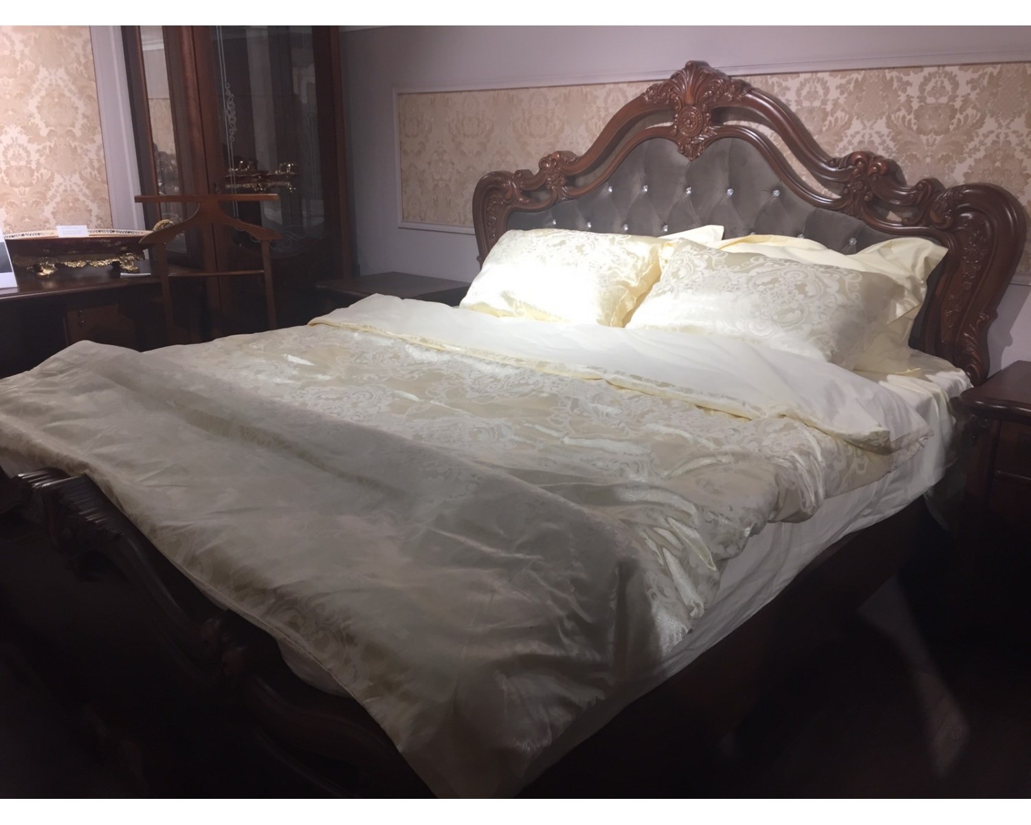 Кровать двуспальная Илона 1.8 караваджо с мягким изголовьем - долгожданная новинка серии. Кровать имеет приятный цвет и уютную мягкую спинку в каретной стяжке. Поставляется в разобранном виде.