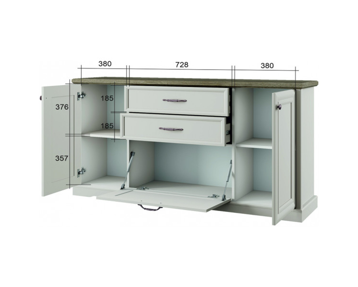 Тумба 3D2S-1 TOSCANA NEW. Оригинальный дизайн элемента подчеркнёт элегантность и аристократичность интерьера. Конструкция тумбы 3D2S-1 прямая, представляет собой два отделения с полками ЛДСП за двумя глухими дверями, одно отделение за откидной дверью, два выдвижных ящика (2S). Данный элемент мебели универсален и может оформить любую по функционалу комнату. Две двери распашные, одна откидная, крепятся на петли и газлифты к боковому корпусу изделия. Особенностью модели является дизайн, использование петель и направляющих с доводчиками.