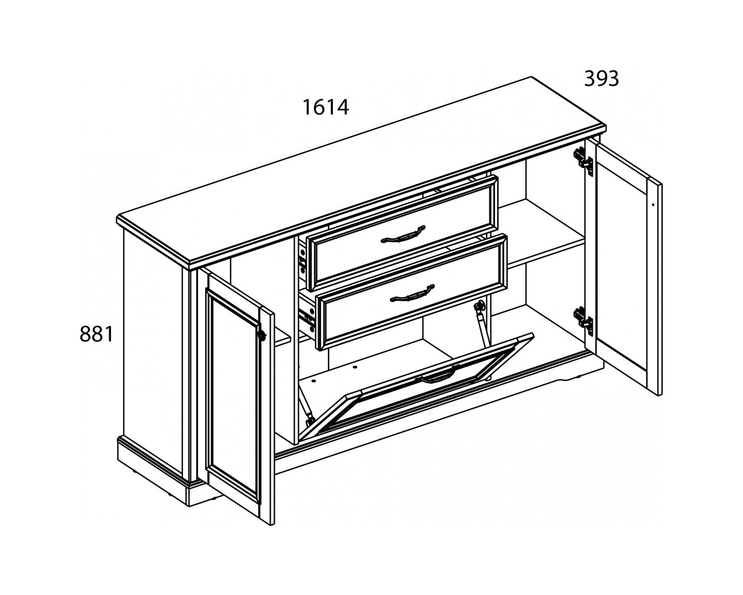 Габариты 1614х881х393