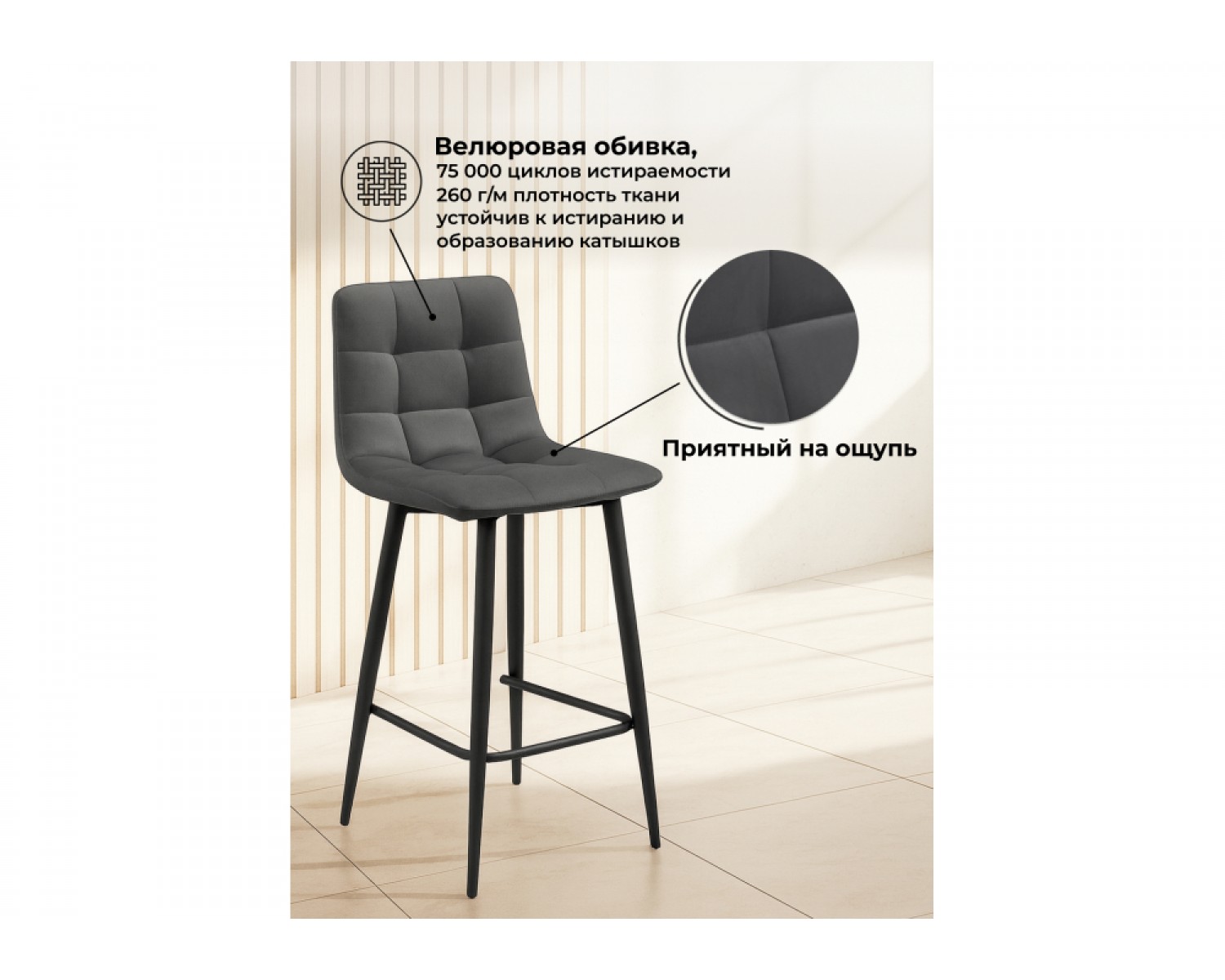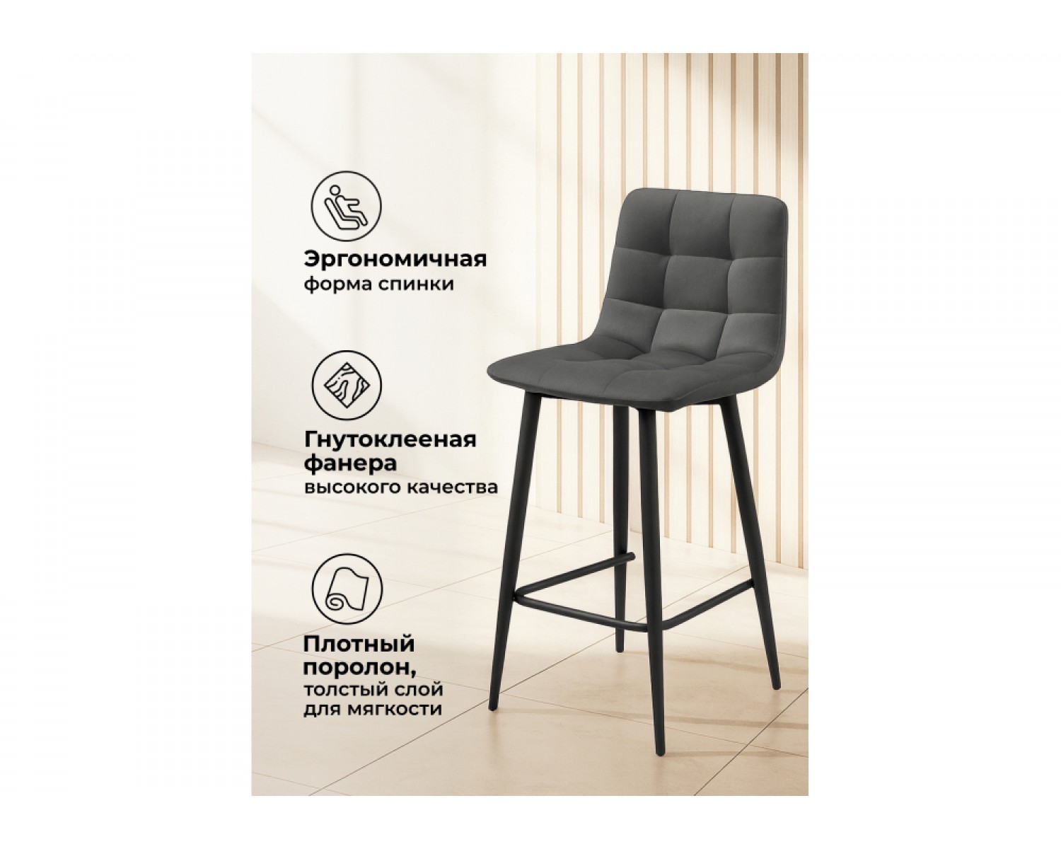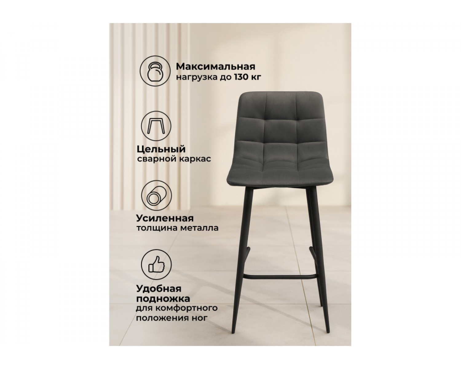 Полубарный стул Симпл темно-серый / черный идеально впишется в любой интерьер, украшая повседневную жизнь. Уникальный дизайн и трендовый цвет создаст ощущение уюта и тепла в любом помещении.