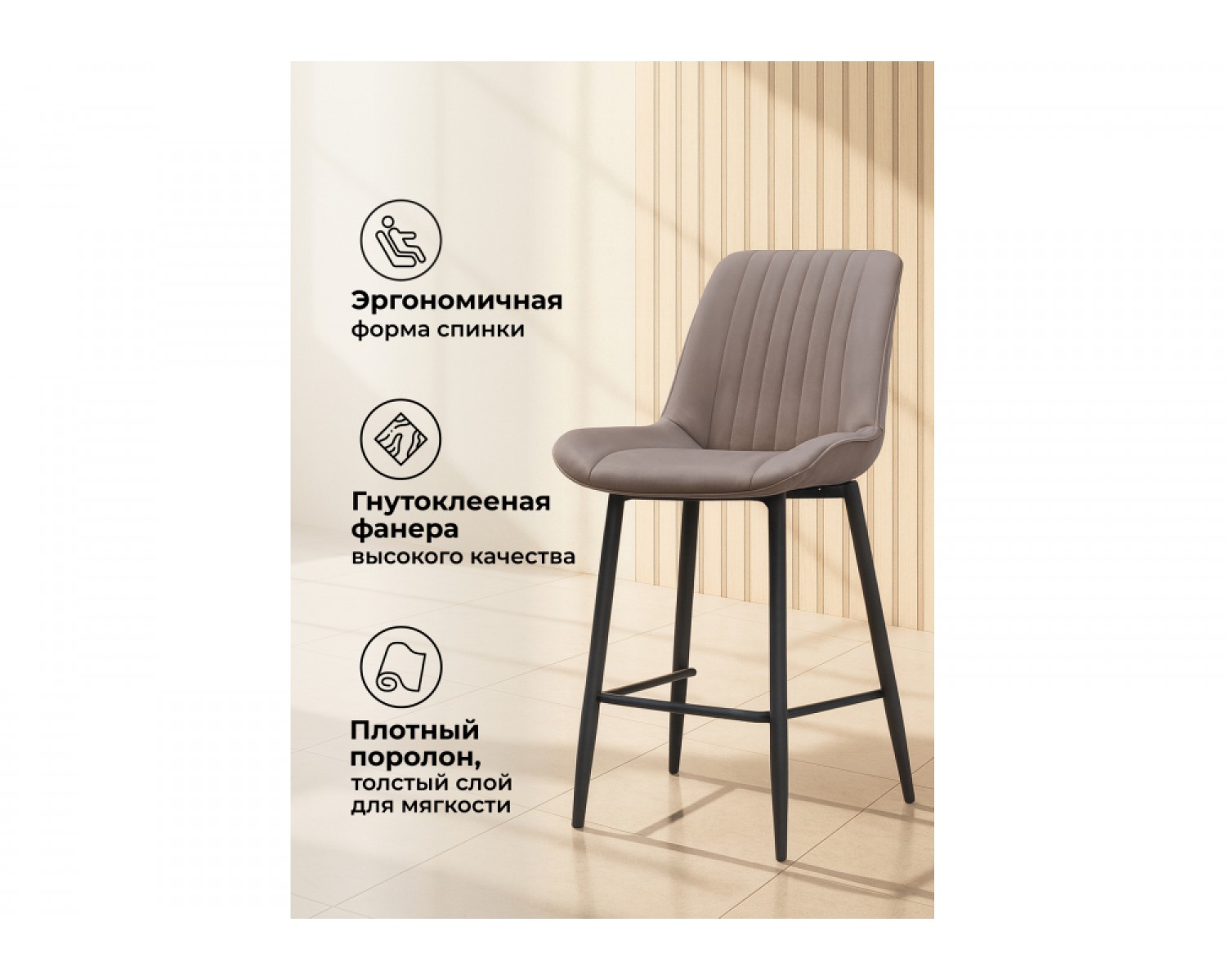 Полубарный стул Вейв латте / черный идеально впишется в любой интерьер, украшая повседневную жизнь. Уникальный дизайн и трендовый цвет создаст ощущение уюта и тепла в любом помещении.