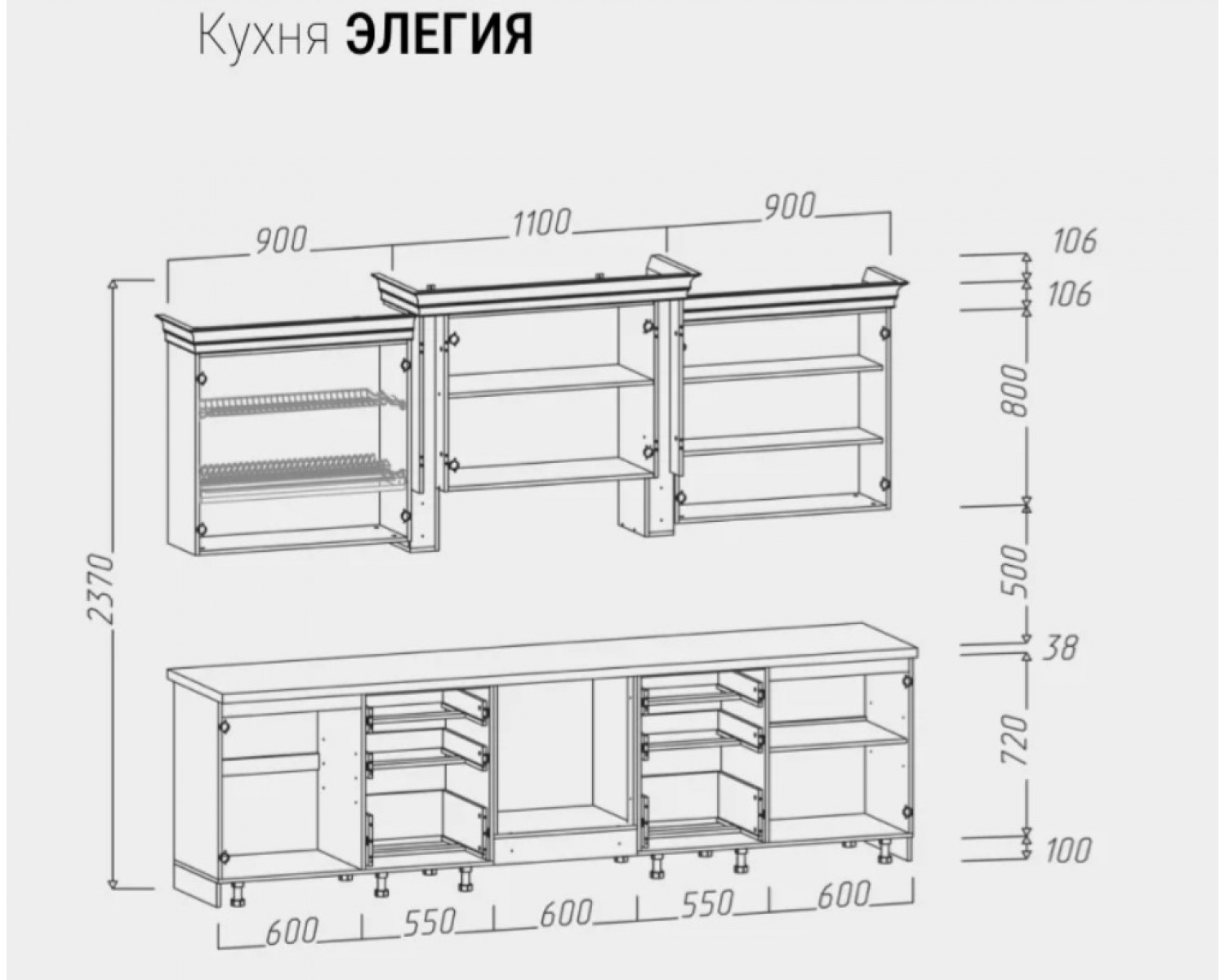 Высота готовой кухни: 2370 мм