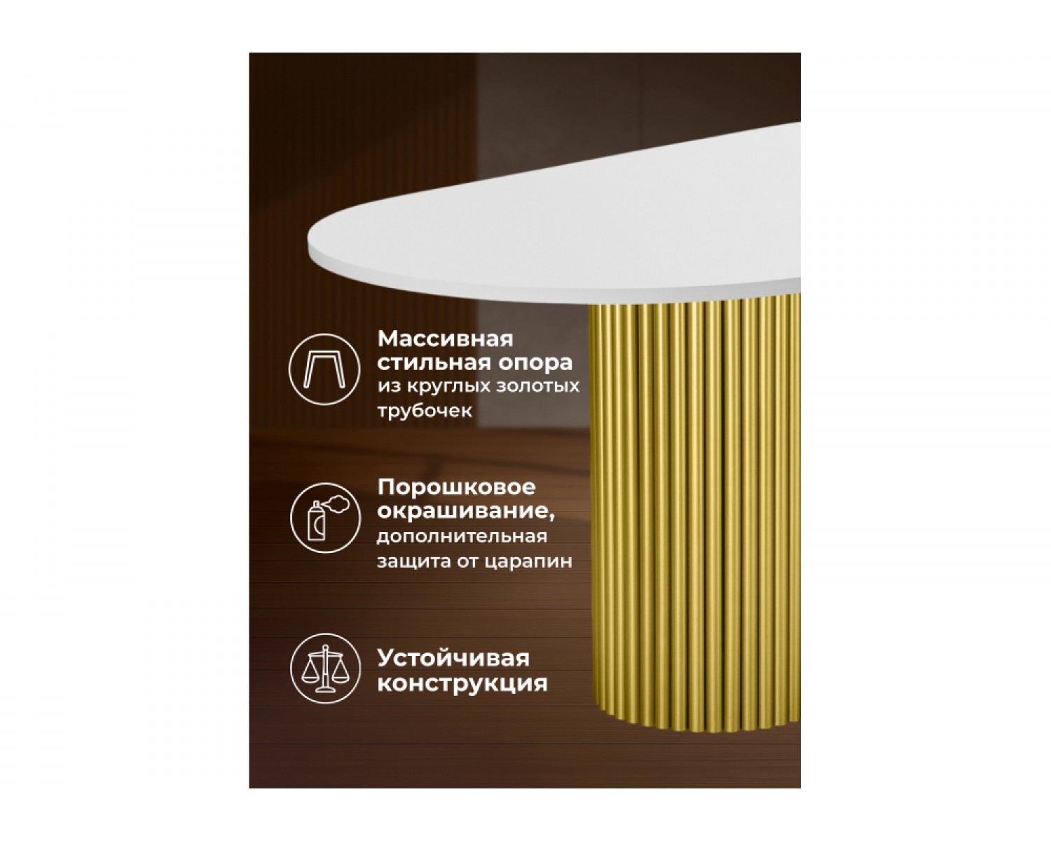Наш магазин радует клиентов с 2010 года, что подтверждают тысячи положительных отзывов. Работаем напрямую с Woodville, поэтому Деревянный стол Барон О 180 х 90 белая пленка шагрень / золотые ноги можно купить за 44 352 руб. с доставкой по г. Курган, а так же в любую точку России.