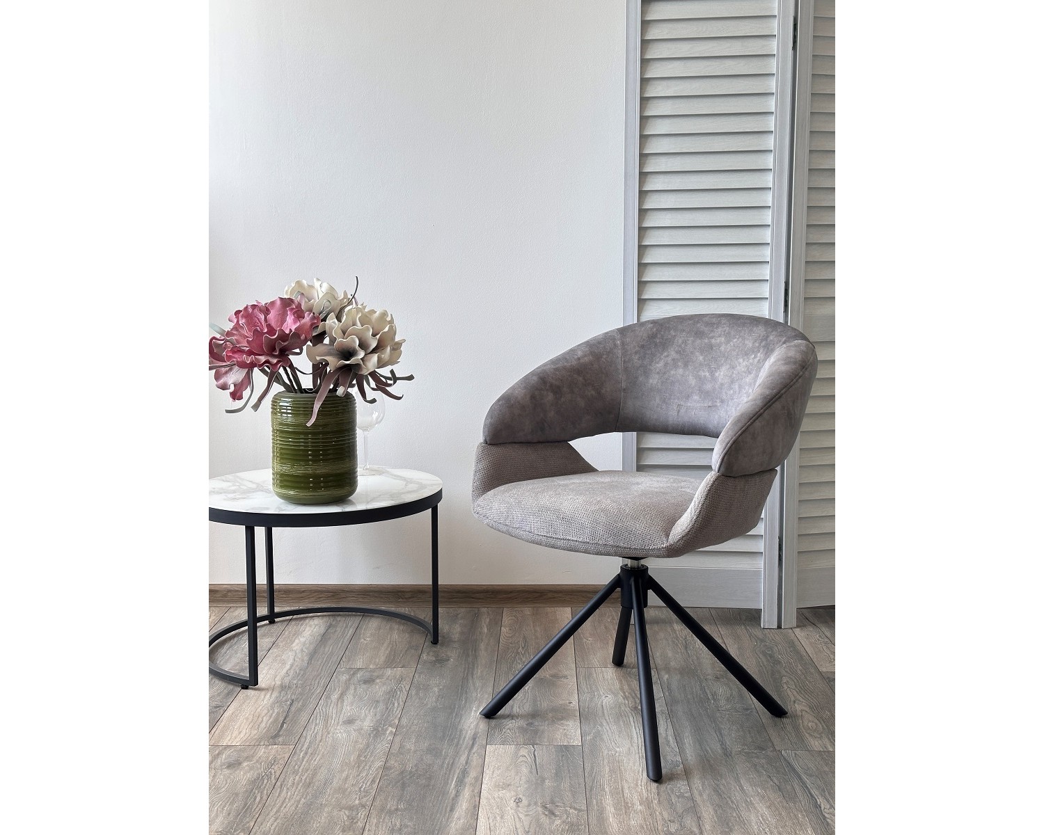 Стул EMBER 360 град. поворот. 7525-180 Серый, велюр/ ENJOY-451 Серый, ткань/ Черный, ®DISAUR в Кургане