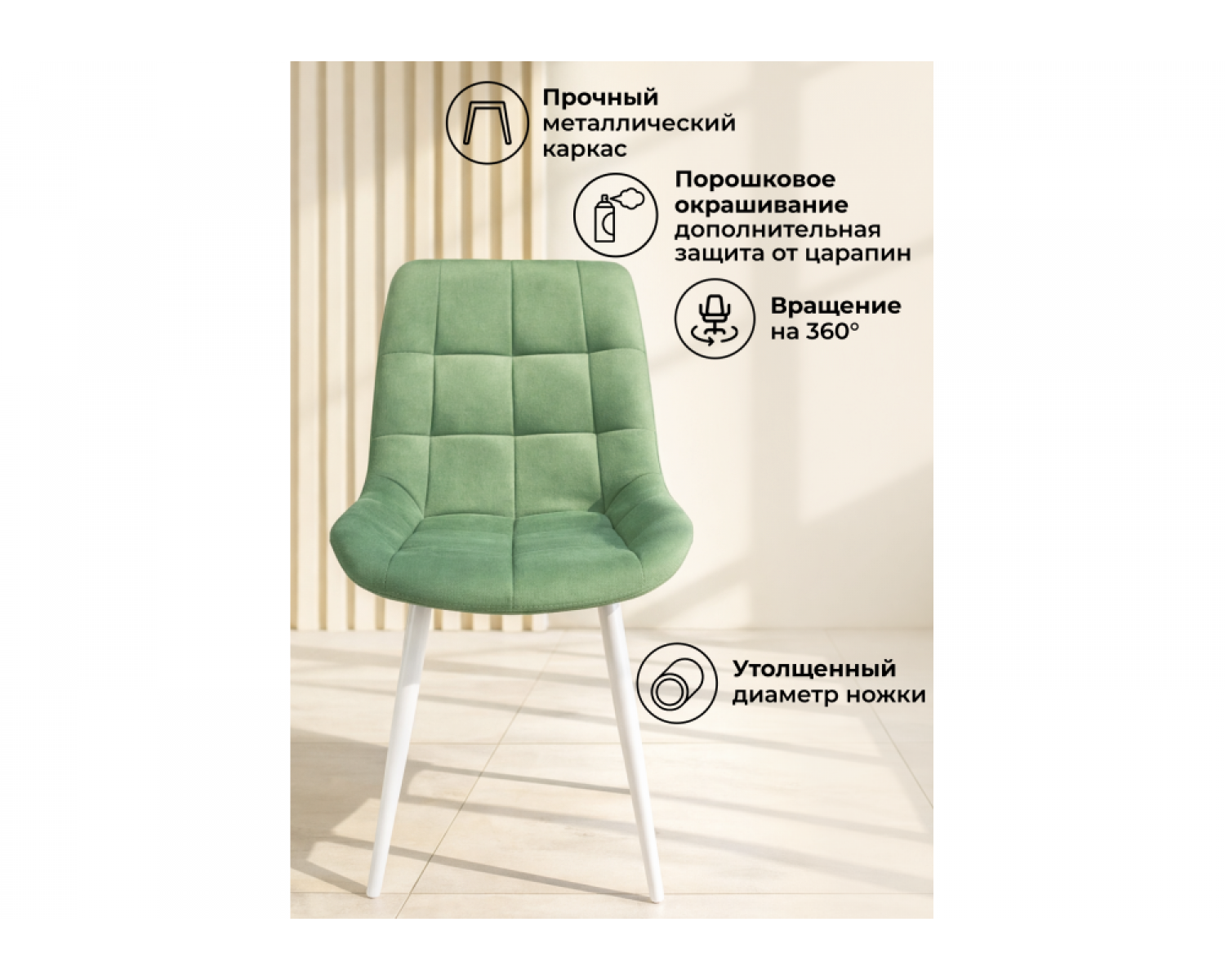 Стул на металлокаркасе Челси 360 К фисташковый (zd 651) / белый идеально впишется в любой интерьер, украшая повседневную жизнь. Уникальный дизайн и трендовый цвет создаст ощущение уюта и тепла в любом помещении.