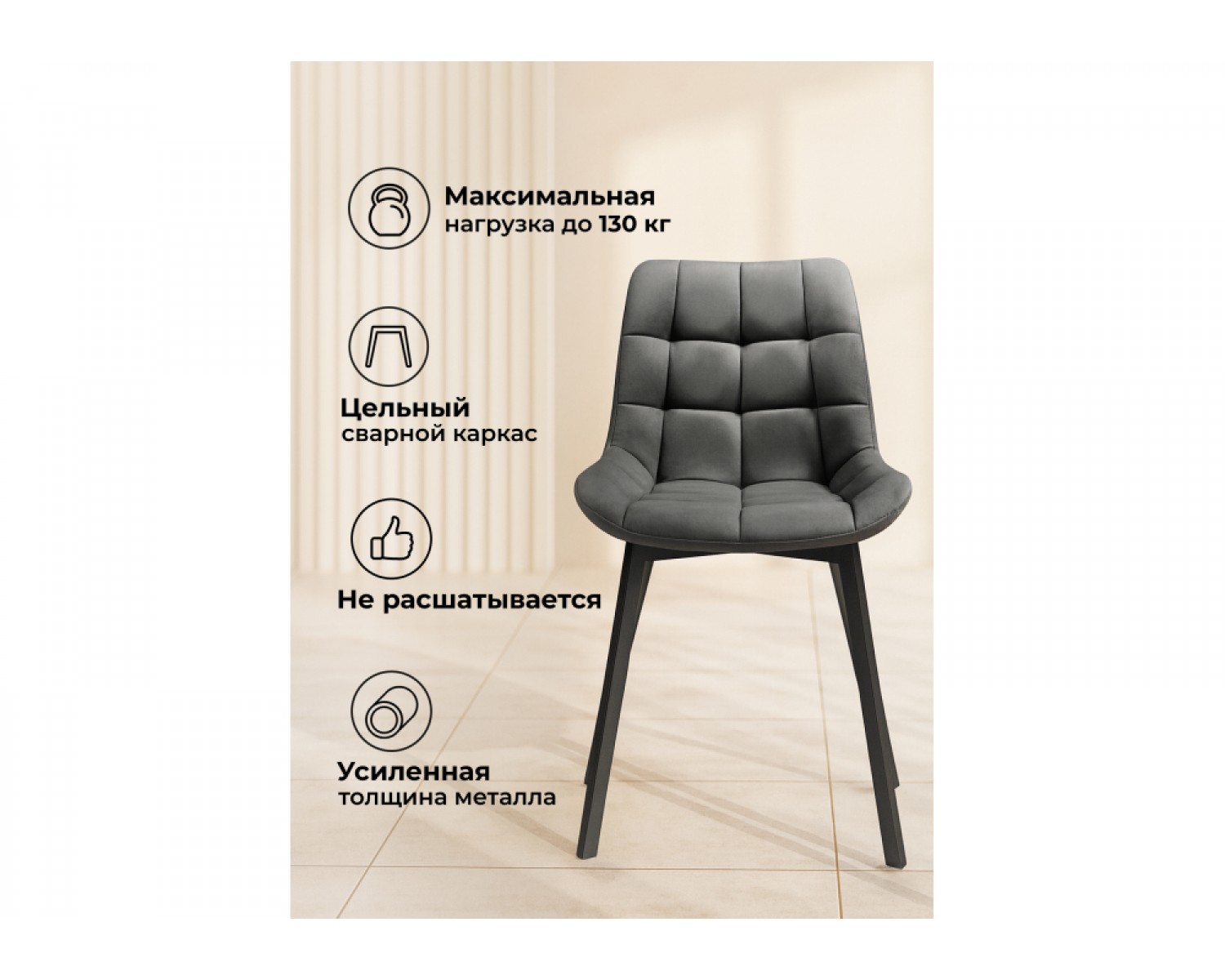 Стул на металлокаркасе Стронг вращающийся темно-серый велютто 32 / черный каркас идеально впишется в любой интерьер, украшая повседневную жизнь. Уникальный дизайн и трендовый цвет создаст ощущение уюта и тепла в любом помещении.