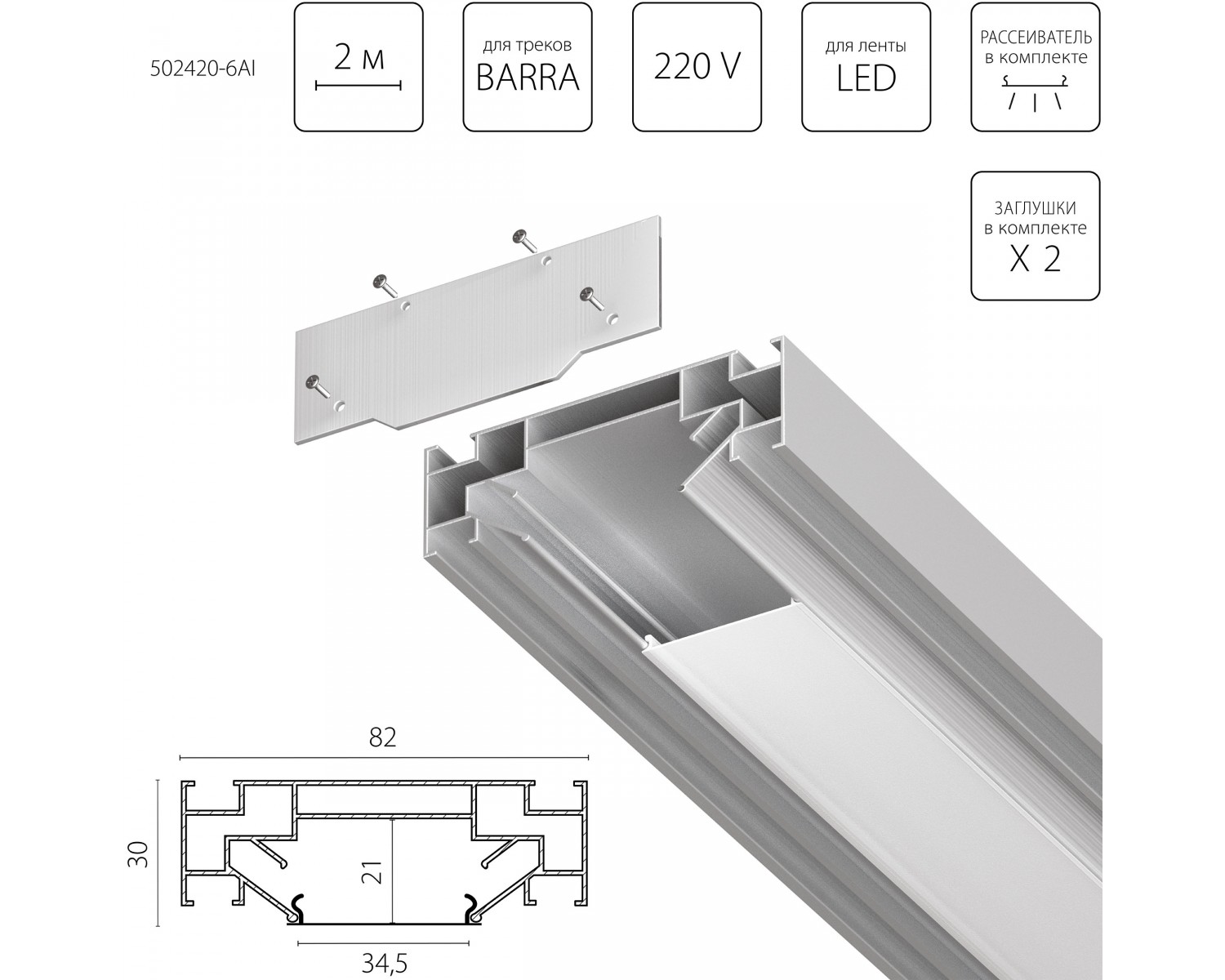 Профиль встраиваемый в натяжной потолок под LED ленту до 30мм либо под трек Barra (1упаковка=6шт) Barra Base Lightstar 502420-6AI идеально впишется в любой интерьер, украшая повседневную жизнь. Уникальный дизайн и трендовый цвет создаст ощущение уюта и тепла в любом помещении.